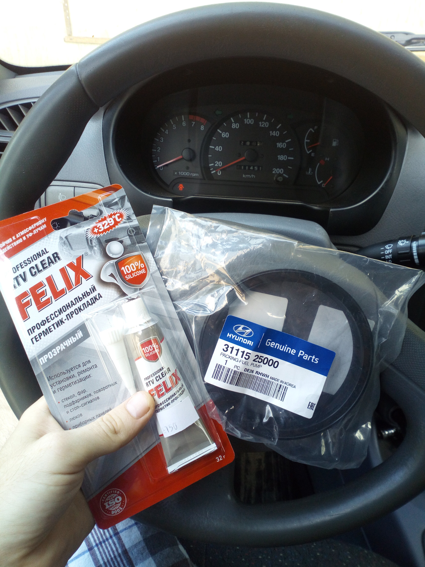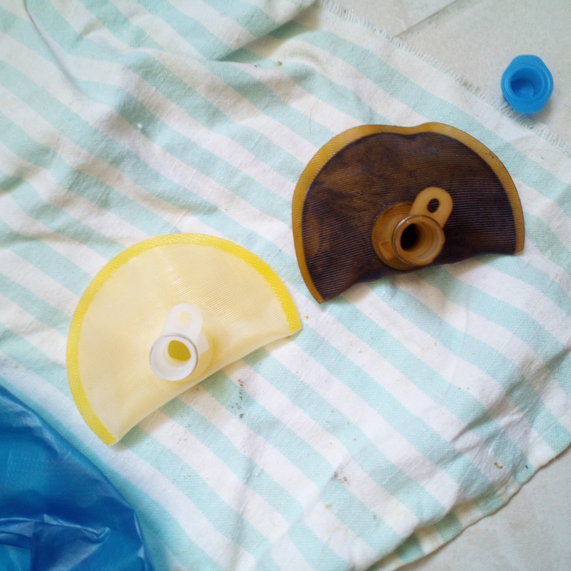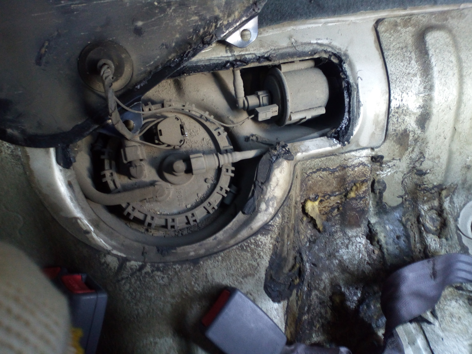 In the end, I bought an AMD fine filter, an original fuel pump strainer, a fuel pump O-ring, and sealant. Of course, installing the filters didn't go without a few hiccups. Here's what I decided for myself: first, always do fuel filter replacements in special gloves; personally, gasoline caused an unpleasant burning sensation on my fingers. Also, I didn't fully relieve the pressure in the fuel system, and as a result, I spilled a bit of gasoline — quite unpleasant, it stank for about two days afterwards. (As far as I understand, after removing the fuel pump relay, you need to crank the starter more). Well, here's another tip that I learned from a repair manual. It turns out that on the fine filter, there's a place for grounding (I understand it's to prevent a spark when removing the fuel lines). It says the ground wire should only be disconnected after you've removed the hoses. Dunno, I took it off first thing, and it seemed fine) maybe I just got lucky. But the problem I couldn't solve was fully securing the metal cover with sealant (I didn't have anything heavy enough to press it down while it set).